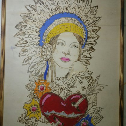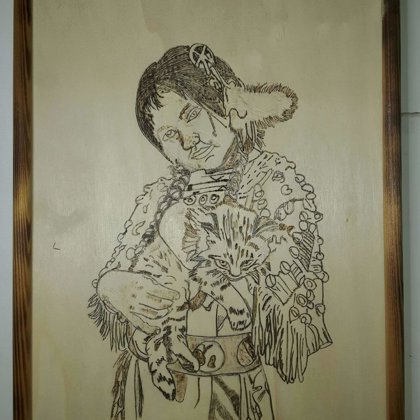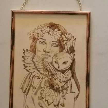 fille et le hibou format A4 80frs 80 euro -